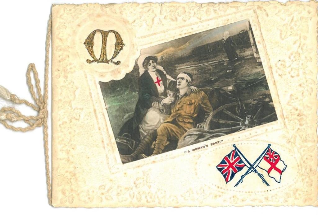 World War 1– This WW1 Christmas card illustrates ‘A Woman’s Part’ – the important role of providing medical care and support to injured soldiers.