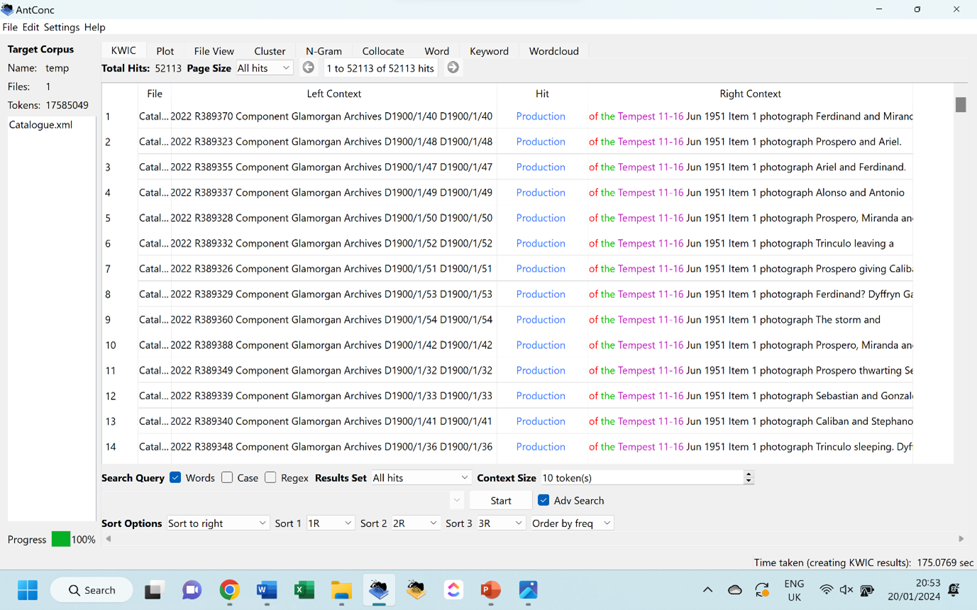 The work is very much in-progress but it is due to conclude at the end of February. A second blog will detail the process of reviewing the hits from AntConc, the headline results from the project, and possible next steps.