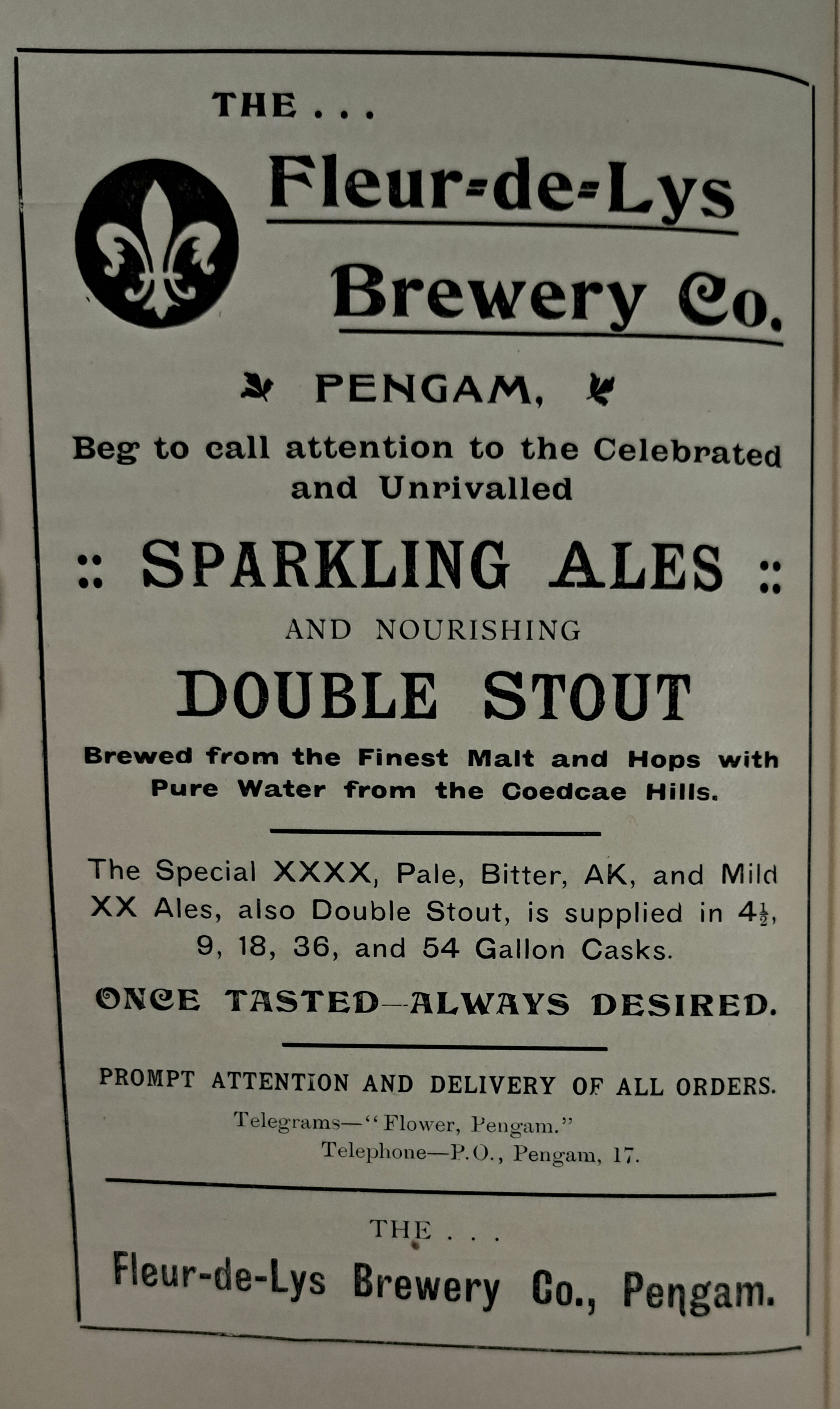 While in Bargoed, we stop by the Fleur de Lys Brewery. Their advertisement is very polite, with carefully chosen words that feel almost overly courteous. It makes you wonder: Was this a reflection of the brewery’s culture, or simply a marketing tactic to appeal to a refined clientele?