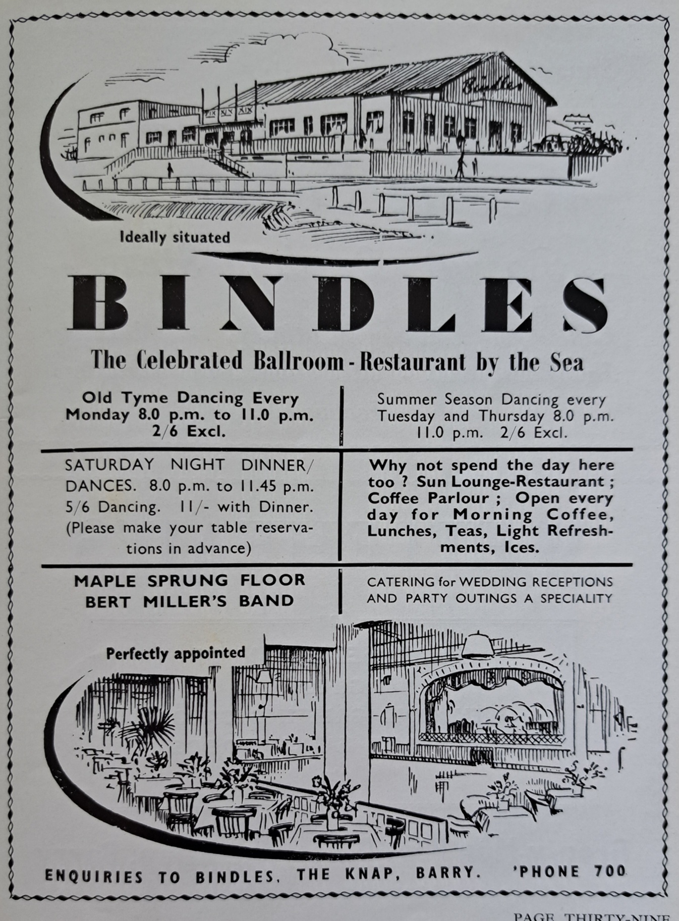 Heading south to the Vale of Glamorgan, we face a tough decision for dinner. One option is the Penarth Vegetarian Guest House, who advertises a brochure you can send away for — a quaint reminder of a time before instant online searches. Alternatively, there’s Bindles, “The Celebrated Ballroom-Restaurant by the Sea,” complete with organized dances, a sun lounge, coffee parlour, and live bands.