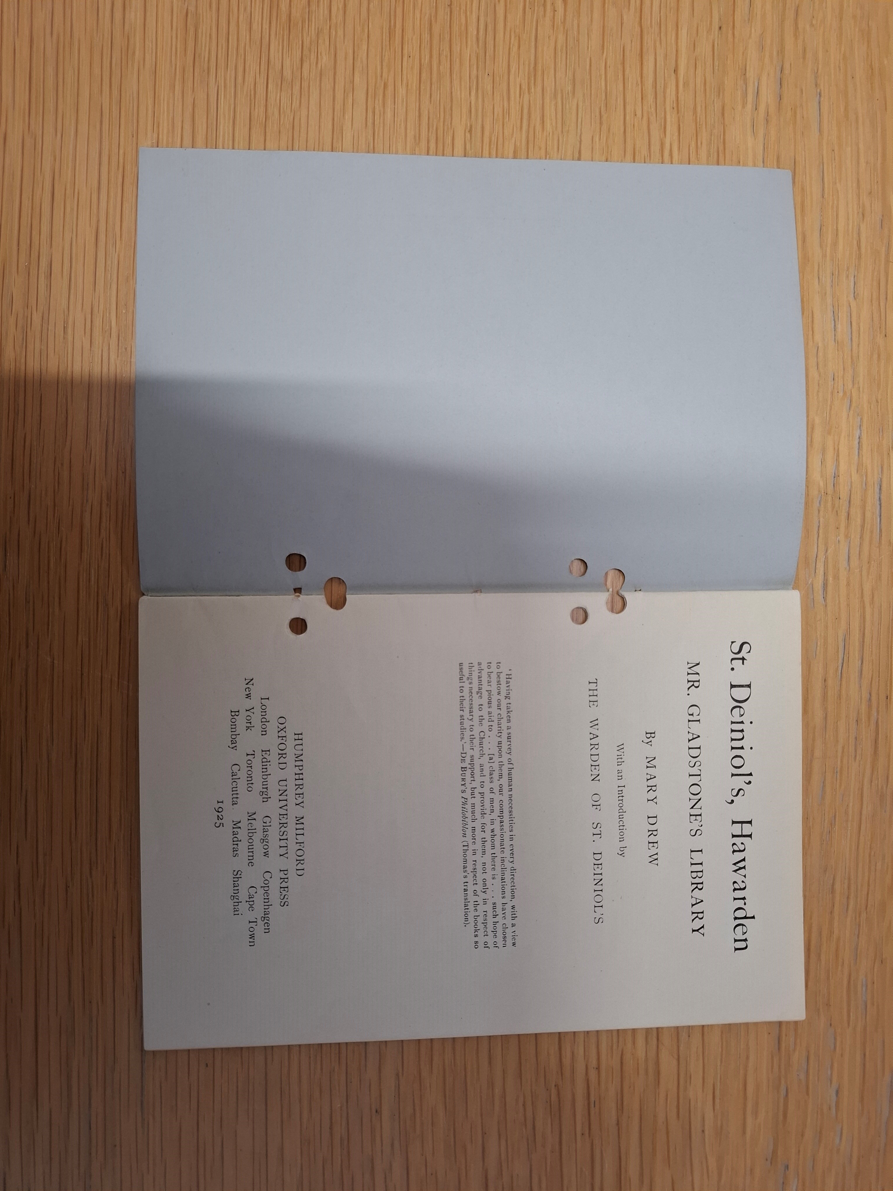 St. Deiniol’s Hawarden, Mr Gladstone’s Library by Mary Drew (1925), item from Gladstone’s Library: